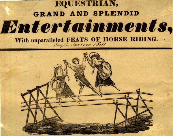 Below is a poster advertising equestrian entertainment at The Eagle Music Hall